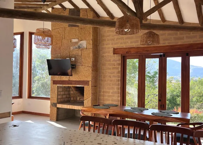Vila Vila Refugio Natal1 Villa de Leyva je umístěna 2 km od Terakotový dům Casa Terracota, je 3-ložnicové ubytování s terasou.